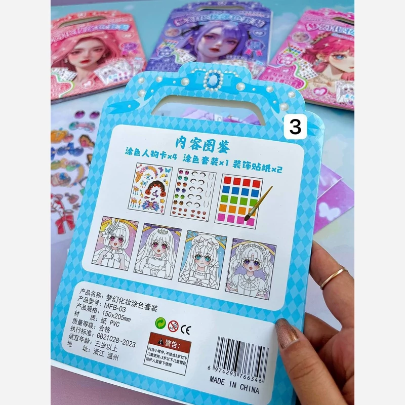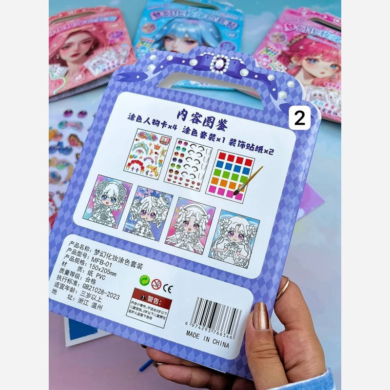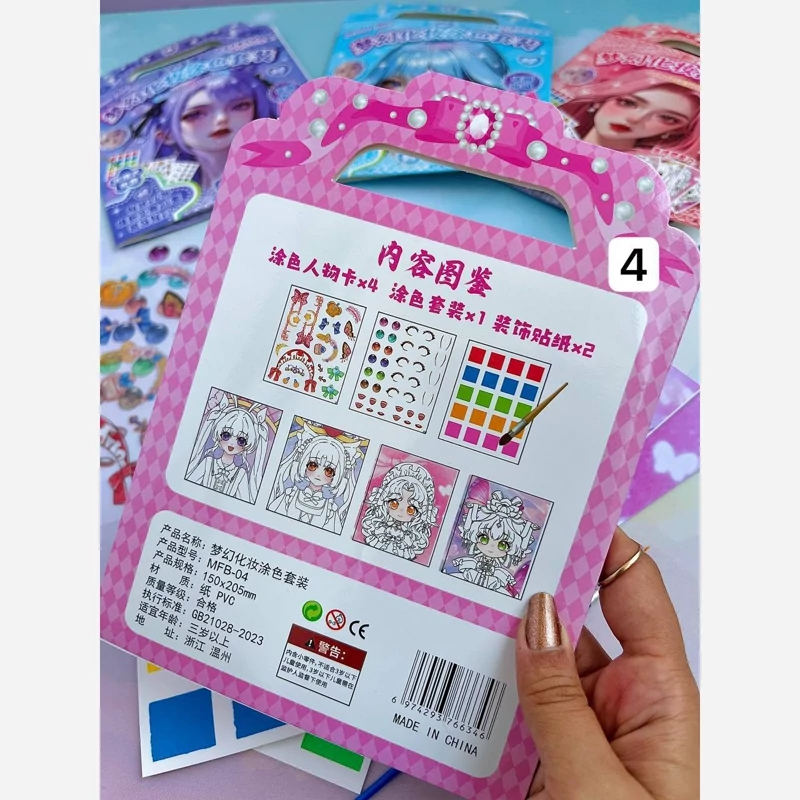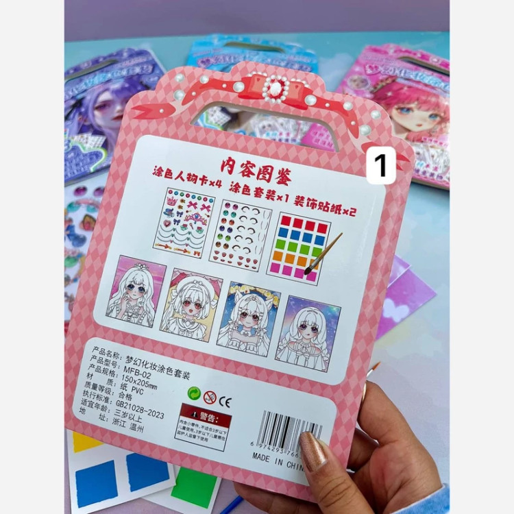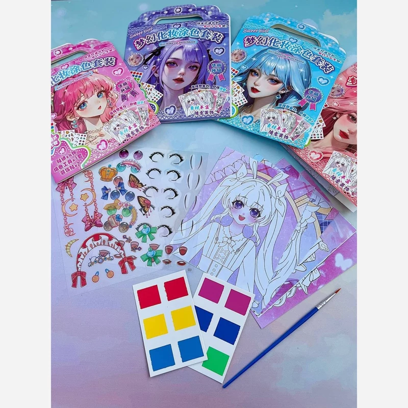 ست رنگ آمیزی و استیکر 8تیکه آرایش انیمه سرگرمی آبرنگی و استیکر همراه با قلمو